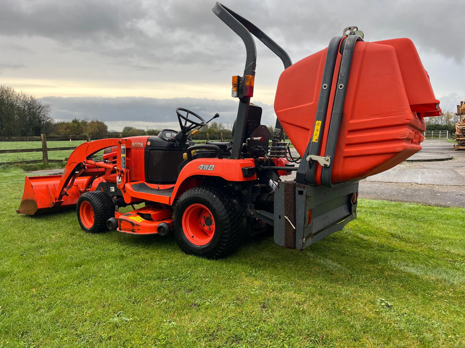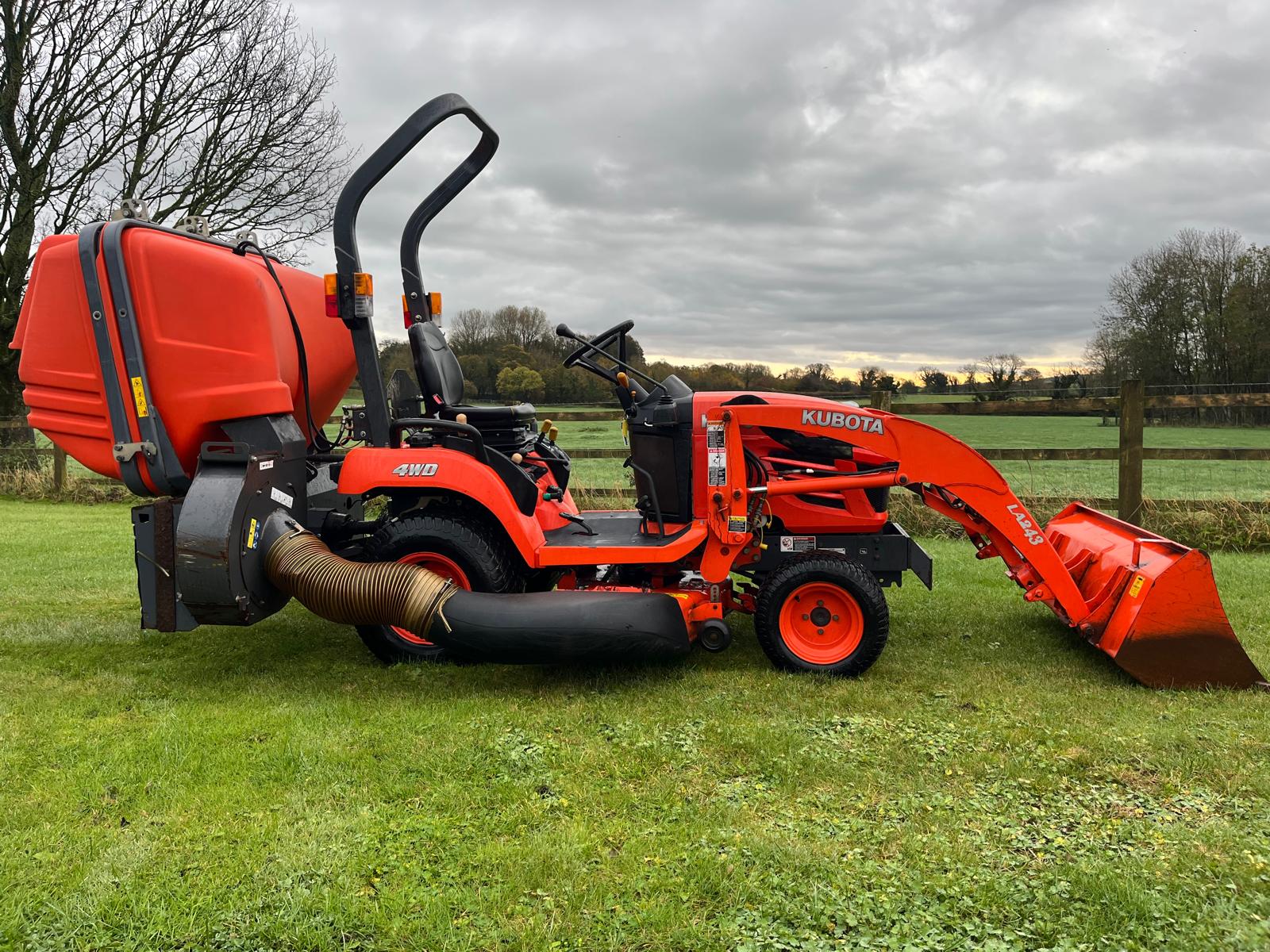 Attachments: LA243 Loader. RCK48 Side Discharge Deck. GCD600BX Collector.